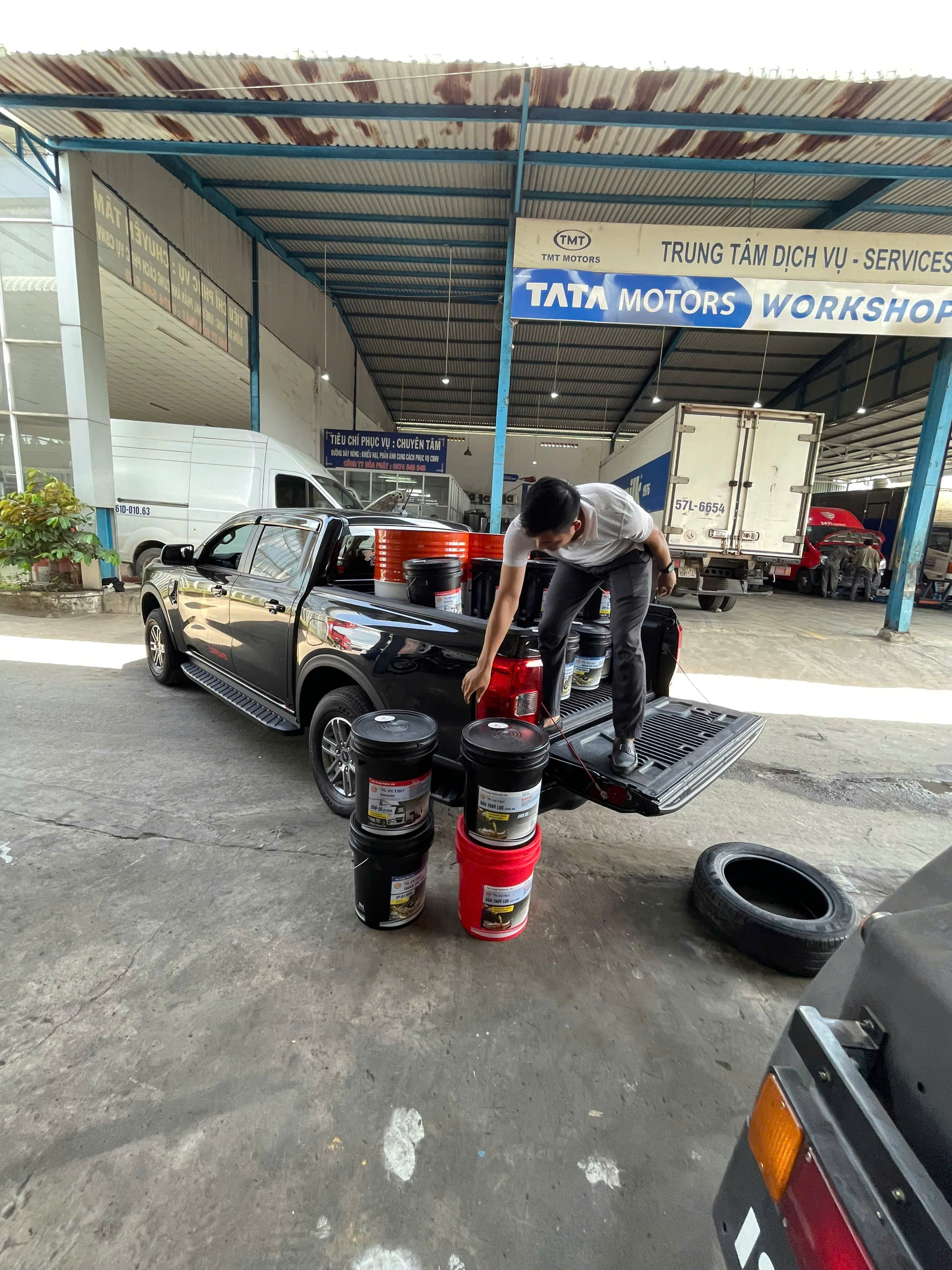 (Hình ảnh: Giao hàng dầu cắt gọt S-Petro bằng xe tải chuyên dụng tại khu vực Bến Cát, Bình Dương)